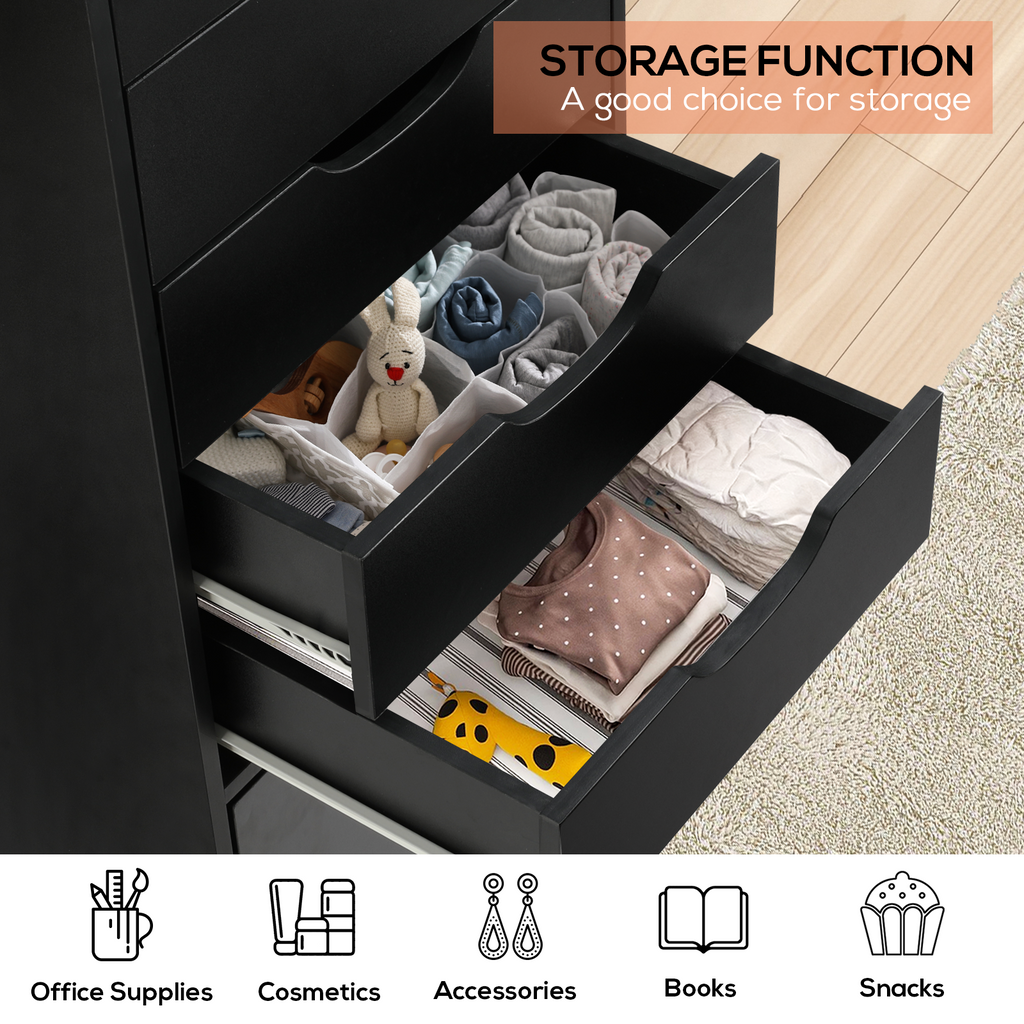 SIMPLE AND STYLISH: Cutout black dresser and chest of drawers with minimalist design and practicality. The organization and storage drawer dresser is suitable for bedrooms, living rooms, offices, studios and kitchens and perfectly matches a variety of color schemes and shades.
