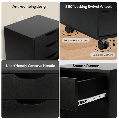 EASY TO MOVE: This mobile chest of drawers has four rollers that allow you to move and adjust the position freely. The first two casters have a braking function for secure placement. This makes moving the chest of drawers or keeping it stationary light and easy.