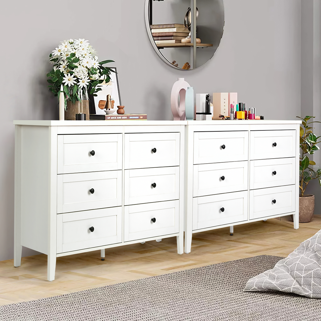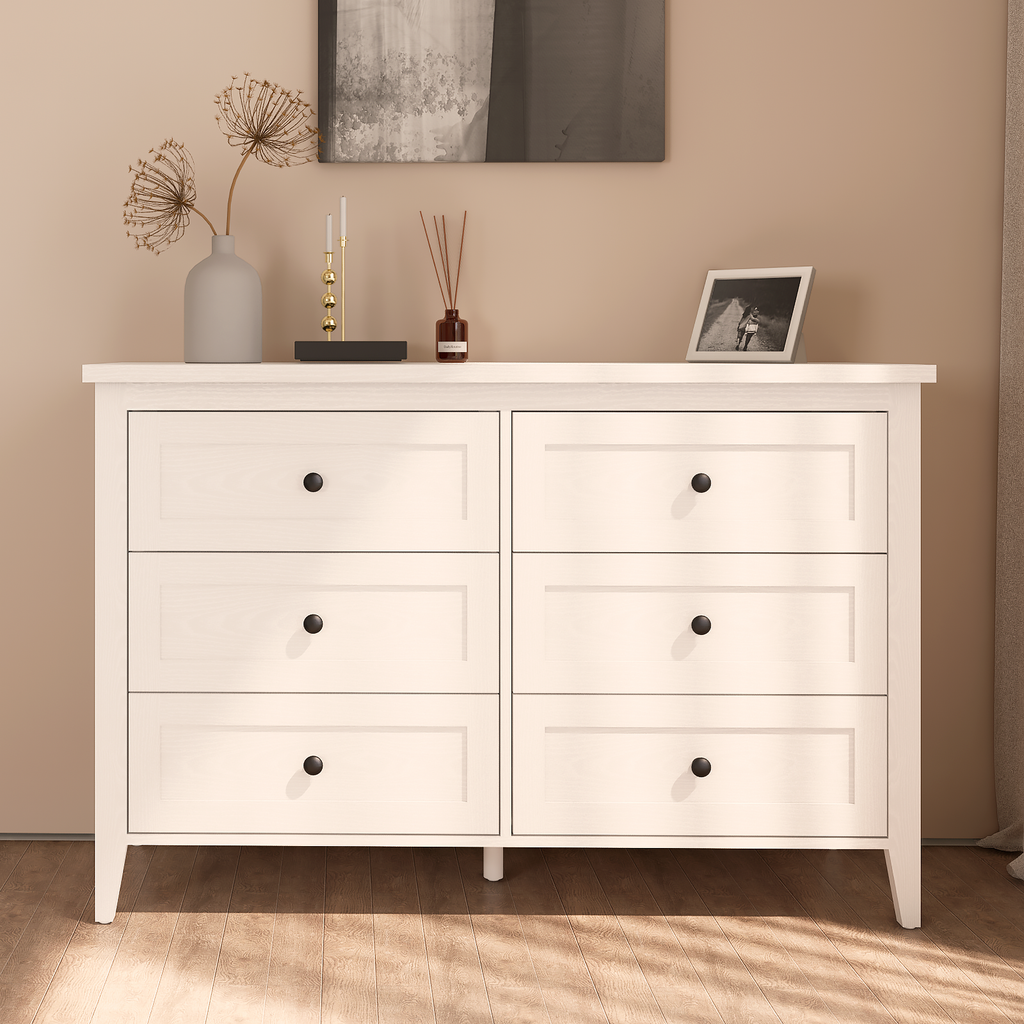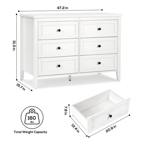 【Ample Storage Capacity】Measuring 15.7 "D x 47.2 "W x 31.5 "H.This dresser quipped with 6 spacious drawers, providing plenty of room to organize clothes, accessories, toys, or household clutter. Keep your space tidy and items neatly categorized