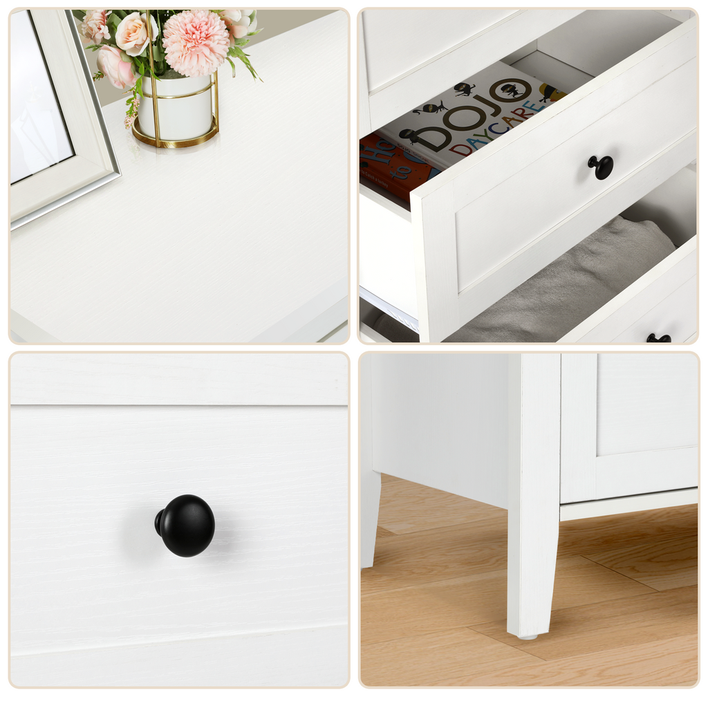 【Chic & Versatile Design】Features a clean - lined white body paired with a natural wood - look top, blending seamlessly into various home decors like modern, Nordic, or farmhouse styles. Perfect as a bedroom dresser, living room storage unit, or entryway organizer