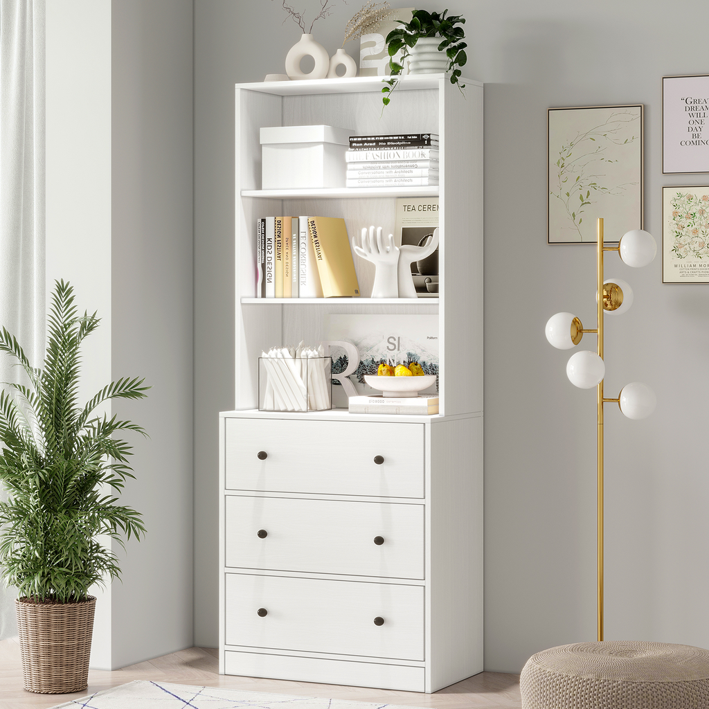 ✅【Ample Storage Space】This white 3 shelf bookcase offers plenty of space to organize your room. 3 large drawers with adjustable shelves help you to neatly store items in different sizes