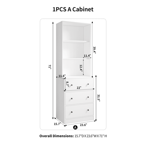 RichYa 71'' Tall Bookshelf with 3 Drawers,3 Tier Display Bookcase with Adjustable Shelves for Home Office,Living Room,White