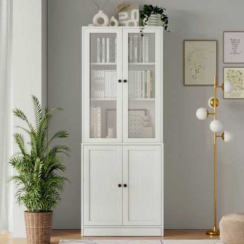 ✅【Modern & Elegant Style】The freestanding bookshelf adds an elegant and luxurious style to your home. 2 tempered glass doors allow you to display your collections with protection