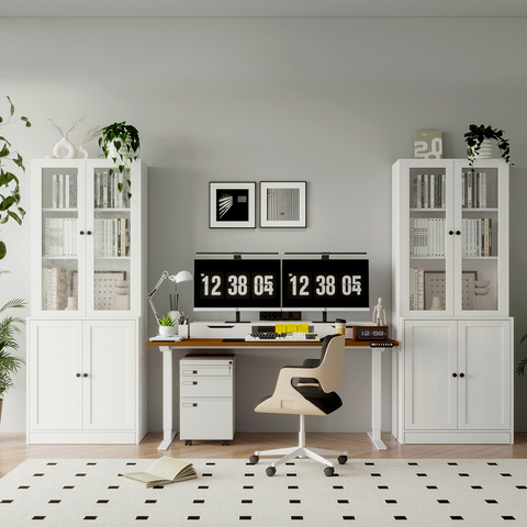 ✅【Easy to Assemble】The glass door bookcase comes with step-by-step instructions and labeled parts for easy assembly