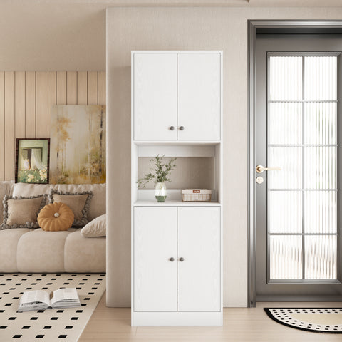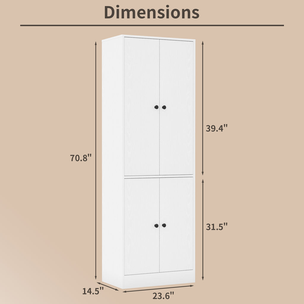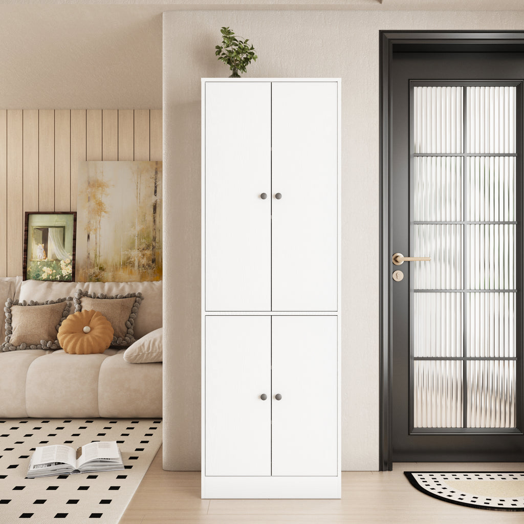 【Modern Design】You will love the minimalist modern design of this white kitchen pantry storage cabinet—boasting a smooth texture and clean, sleek lines that effortlessly complement any space, whether it’s your bathroom, kitchen, dining room, entryway, or living room