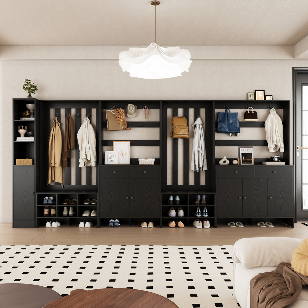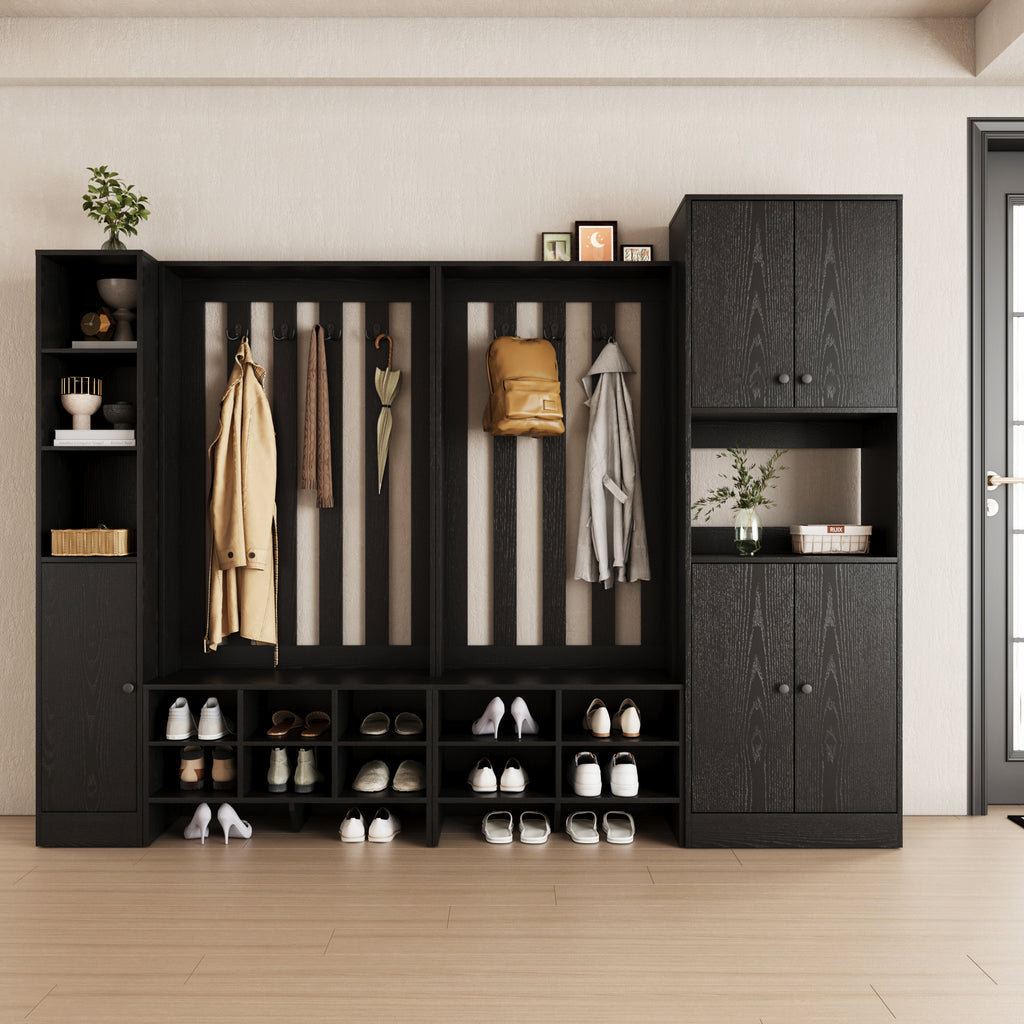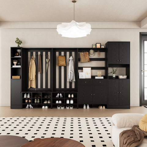 RichYa 71"H Tall Entryway Storage Cabinet,4 Doors Kitchen Pantry Cabinet with Open Shelf,3 Tier Storage Cabinets for Living Room,Entryway,Black