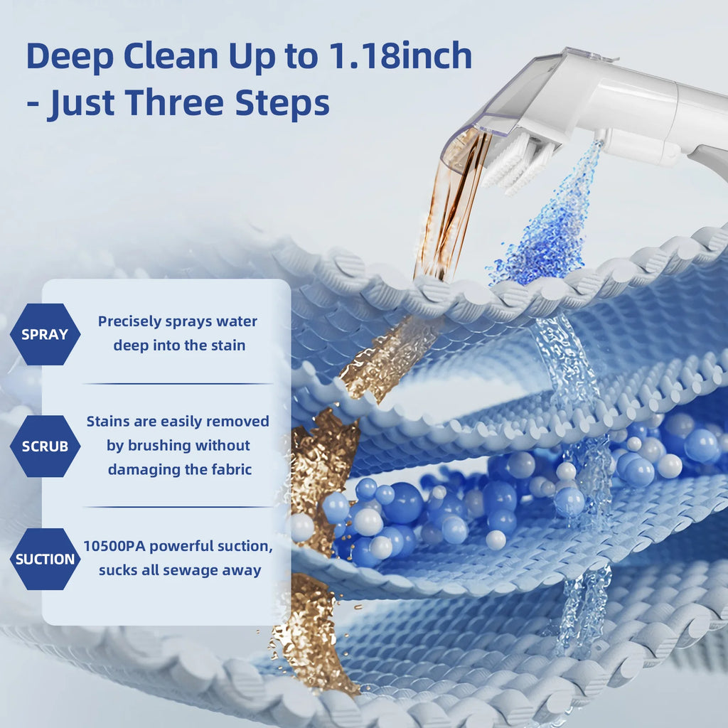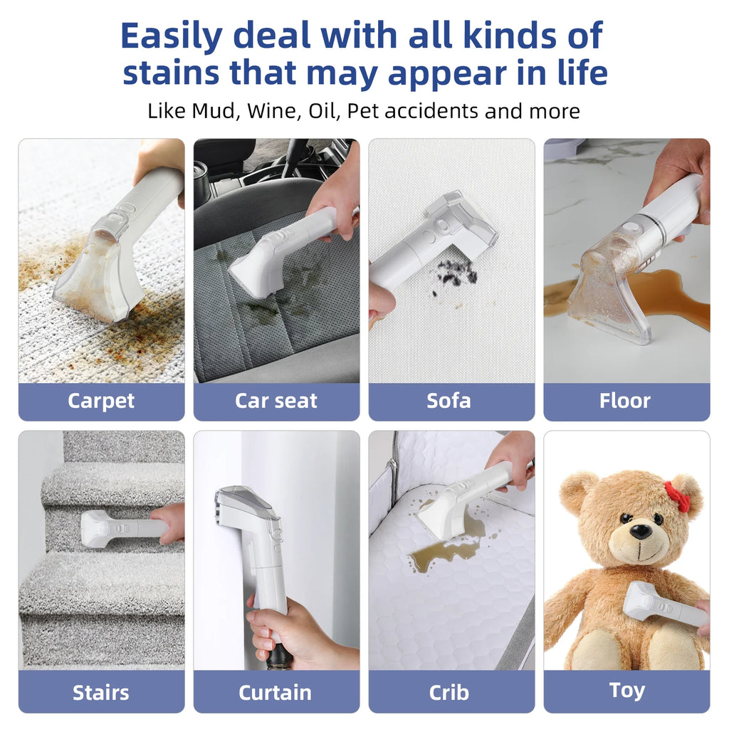 ??Easy to Use??The size of the carpet cleaner machine is 10.8'' x 5.8'' x 11.5'' (L x W x H) and weighs only 7.5 lbs, after being filled with water weighs only 10.1 lbs, portable and light design is also to ensure that you will use it easily.