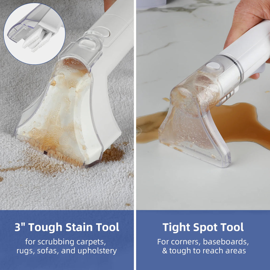 ??Tools For Every Mess?? You've got the tools for every mess with the 3.2" Tough Stain Tool for any area and the Tight Spot Tool for crevices and tough to reach areas.