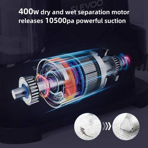 ??Powerful Suction, Clean Efficiently??Compared to some leading comparable spot carpet cleaners suction increased by 54%. 400w powerful motor that delivers 10.5Kpa suction power, and can pull up dirt below 1.18in to achieve real deep cleaning. Rated current: 3amps, rated voltage: 120v.